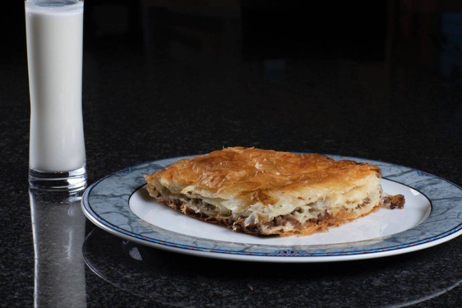 Frisch zubereitete Bureks, Cevapcici und Balkan-Spezialitäten